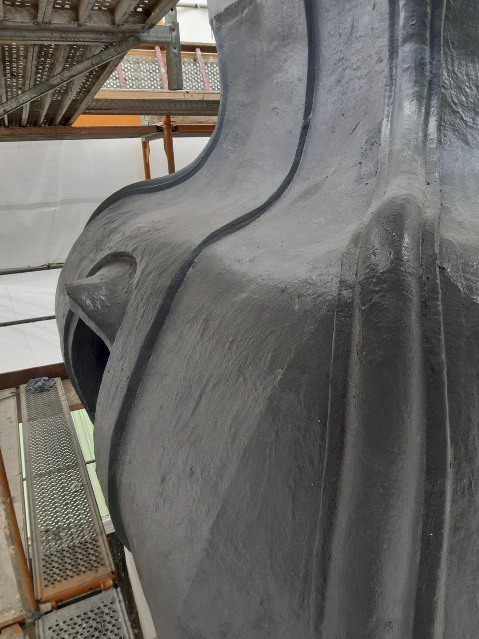 Ausgangspunkt war ein Zwiebelturm mit stark beanspruchter, maroder Oberfläche. Nach dem Entfernen der alten Schichten wurde die Fläche neu verputzt und damit für den weiteren Aufbau vorbereitet. Anschließend kam Enke Arctic Seal flächig zum Einsatz. Das Material wurde mit dem Pinsel direkt auf den neuen Untergrund aufgetragen und sorgte für die erforderliche Abdichtung über die gesamte Fläche.